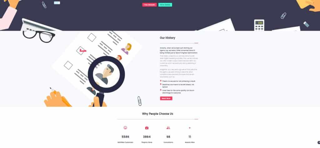 As you may know, counters are another popular feature that is used for many websites. What can I tell you about it? Yes, that’s right: do not overuse it. Believe me you don’t need to put counters everywhere, so just make a stand-alone section for them. As a result, people will see the numerals they are interested at and will not look aside at the same time. To illustrate, below is another screenshot of a modern website template, which shows the best way of using counters (made by TemplateMonster and powered by WordPress):